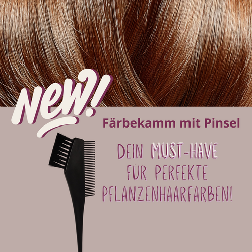 Für alle, die Pflanzenhaarfarben lieben, gibt es jetzt das perfekte Zubehör: unseren neuen Ayluna Färbepinsel mit integriertem Kamm. Dieses 2-in-1-Tool macht das Färben noch einfacher und professioneller.Mit dem Kamm lassen sich die Haare sauber in Strähnen abteilen, während der Pinsel die Farbe präzise aufträgt. So wird die Pflanzenhaarfarbe optimal verteilt – für gleichmäßige, natürliche Ergebnisse ohne Flecken oder Klumpen.